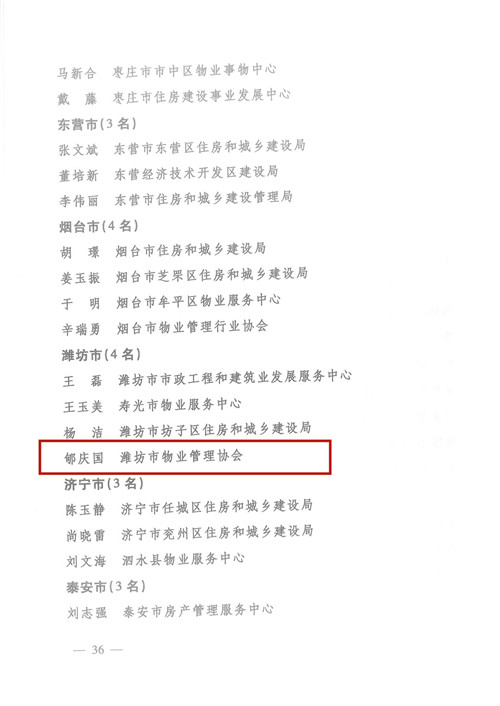 2019年,山東省住房和城鄉(xiāng)建設廳開展了物業(yè)服務行業(yè)文明創(chuàng)建“標準建設年”活動,為表揚鼓勵先進,發(fā)揮示范引領作用,激發(fā)創(chuàng)建工作熱情,經(jīng)逐級申報、審核、公示等程序,公管公司獲得以下省級榮譽:濰坊昌大公共建筑物業(yè)管理有限公司榮獲“全省物業(yè)服務行業(yè)文明創(chuàng)建標兵企業(yè)”榮譽稱號;總經(jīng)理郇慶國兼濰坊市物業(yè)協(xié)會會長榮  ......